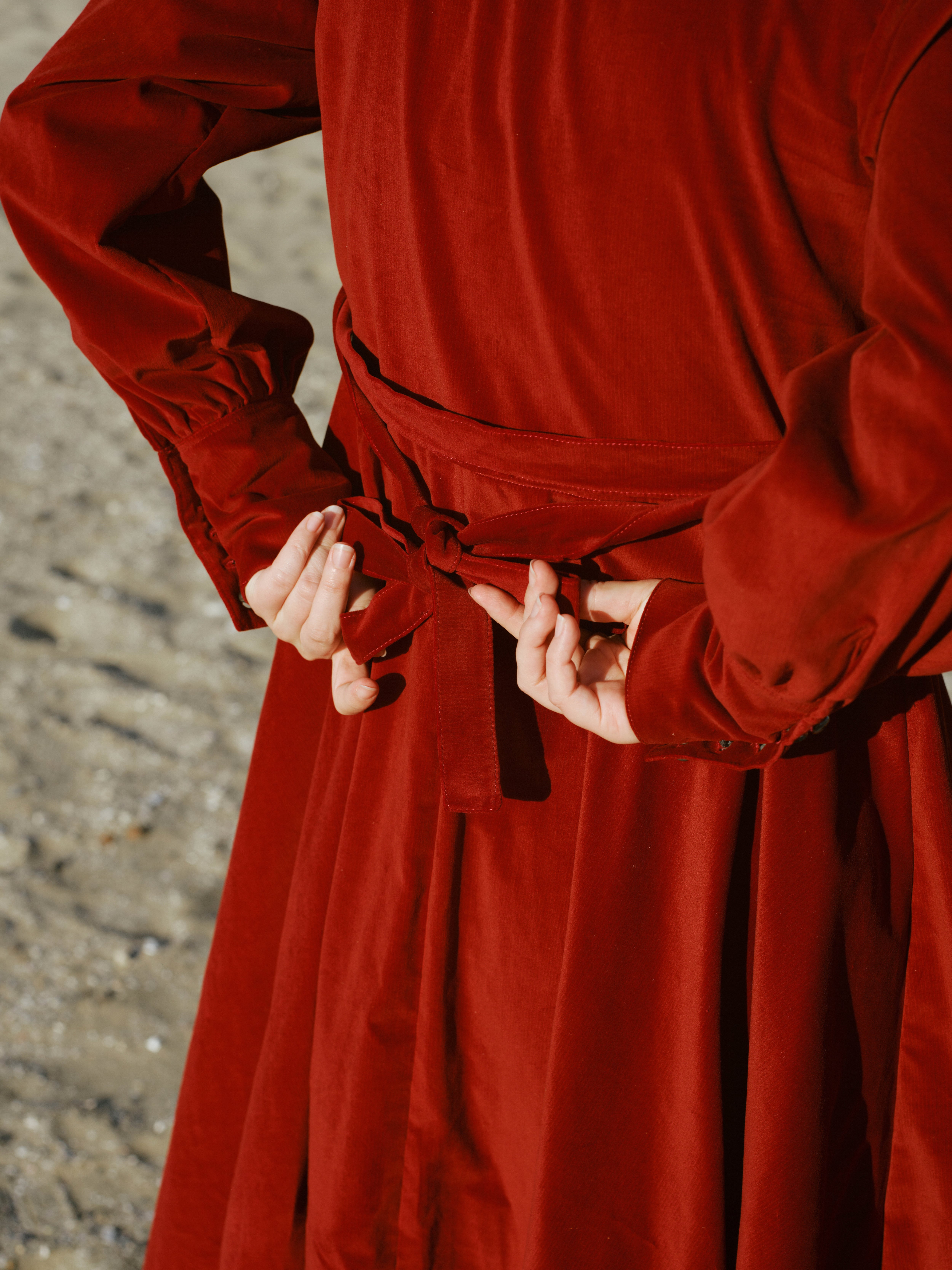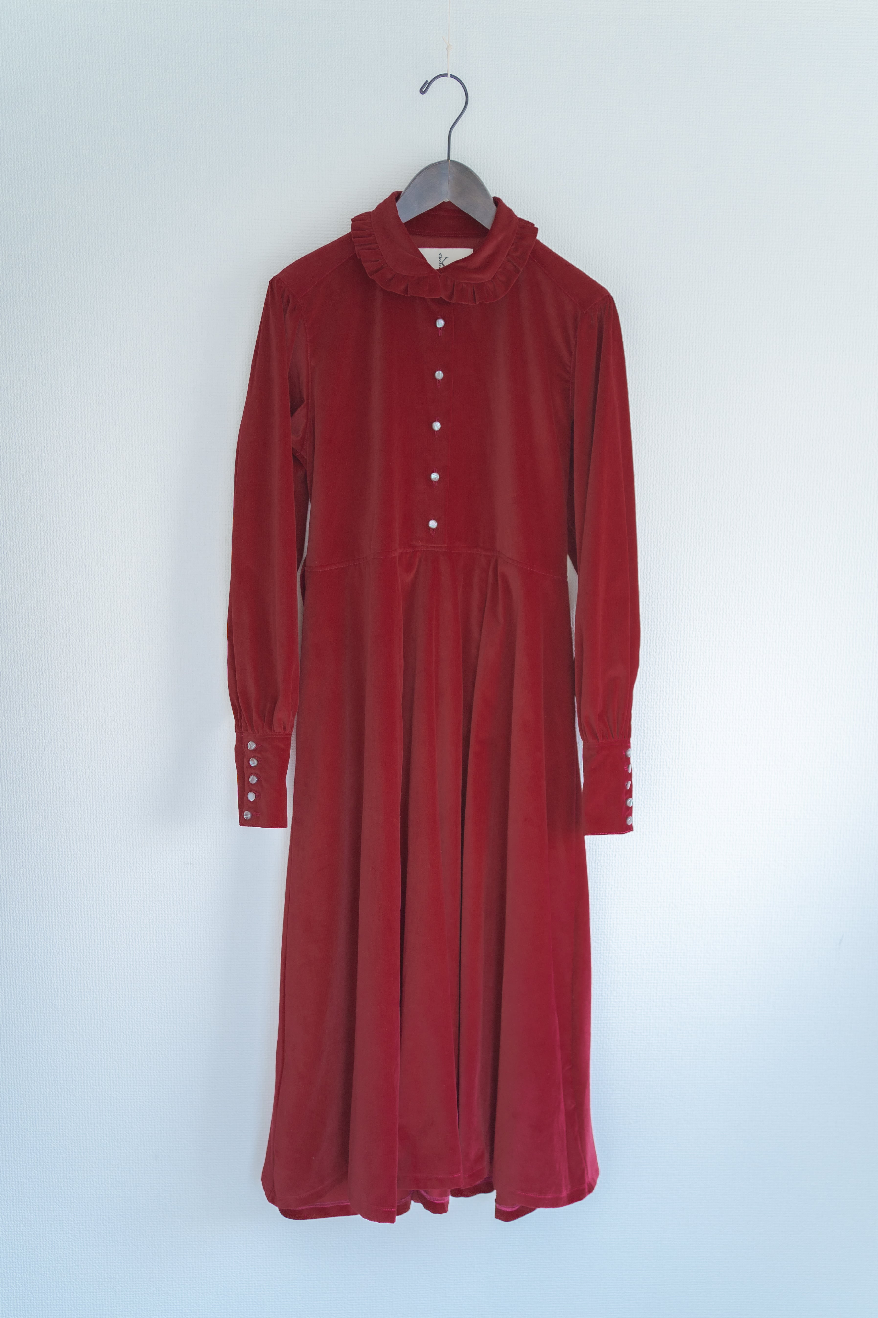 ※ベロア生地は光によって見えるお色味が違って見えます。太陽光や室内での光によって変わります。参考写真では室内と屋外それぞれ撮影しておりますが、同じお色味のワンピースです。