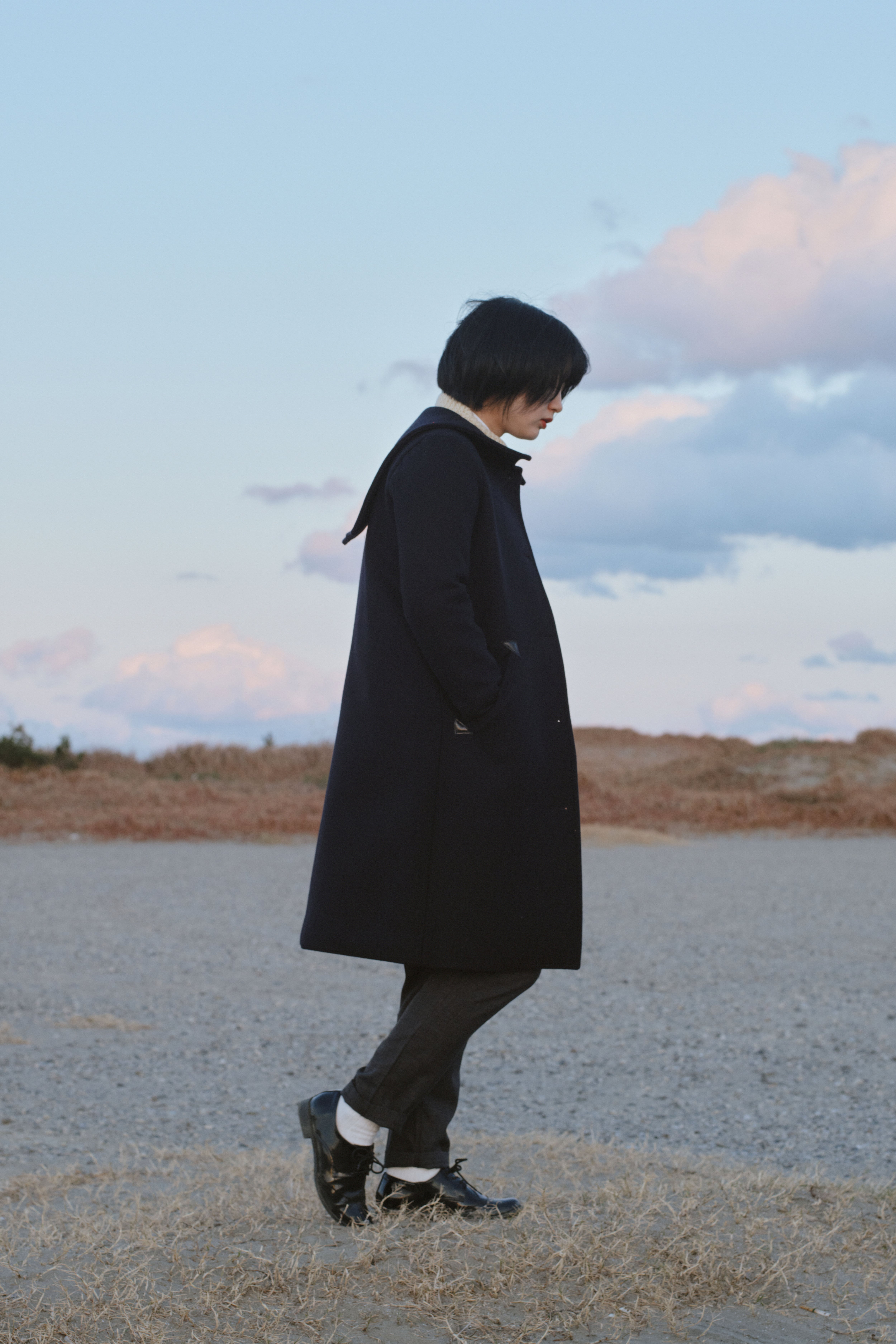 寒い冬の日、羽織るだけで全体の印象を引き締めるこのコートは、日常の中に心地よい品格を添えてくれるでしょう。寒い冬にもバッチリな、しっかりとしたウール生地を使用しているので、長く愛用していただけるつくりを目指しました。