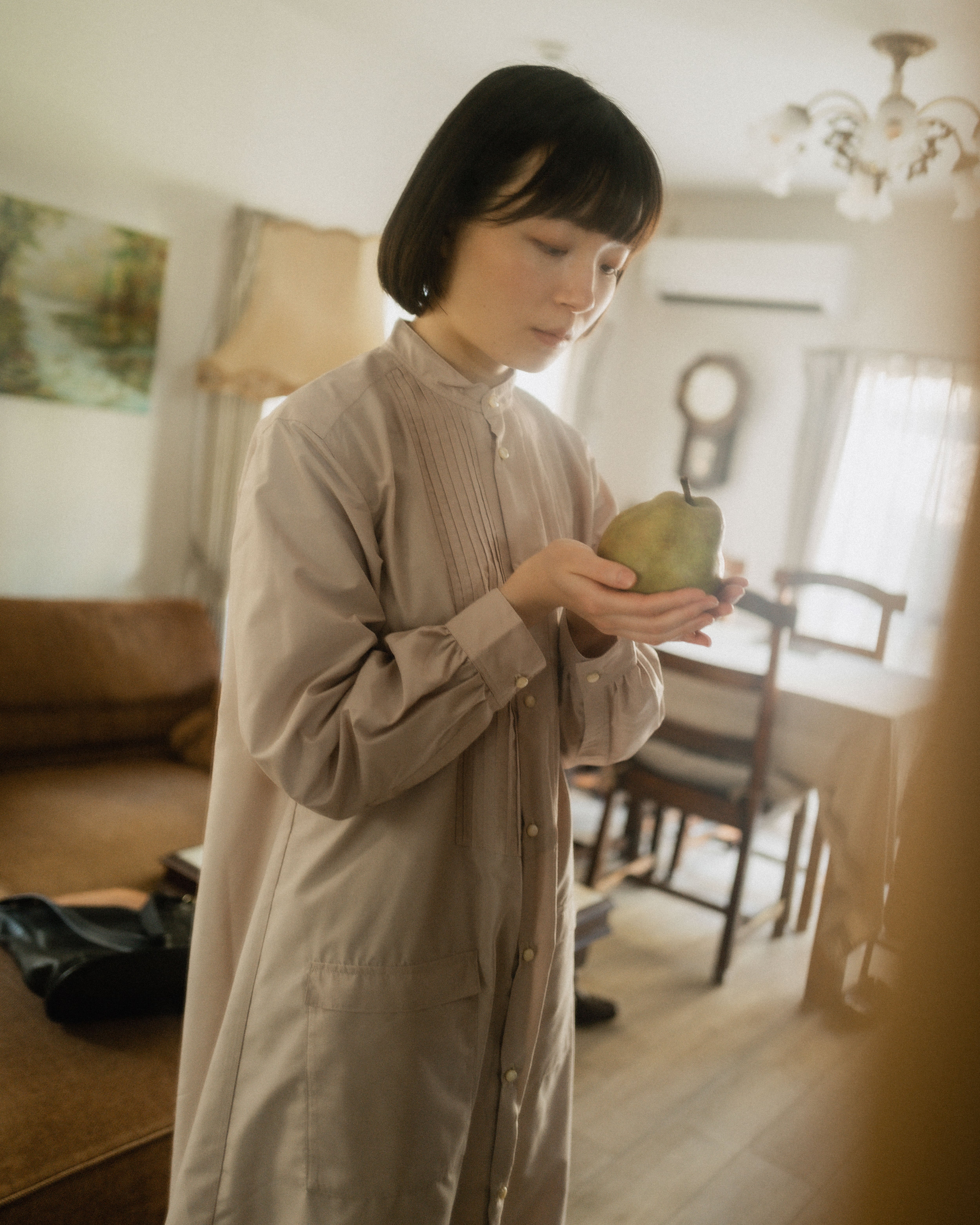 いつもよりも肩線を広く設計していまして、品のある印象を与えつつも、カジュアルなムードもどこか感じさせるようなワンピースにしています。