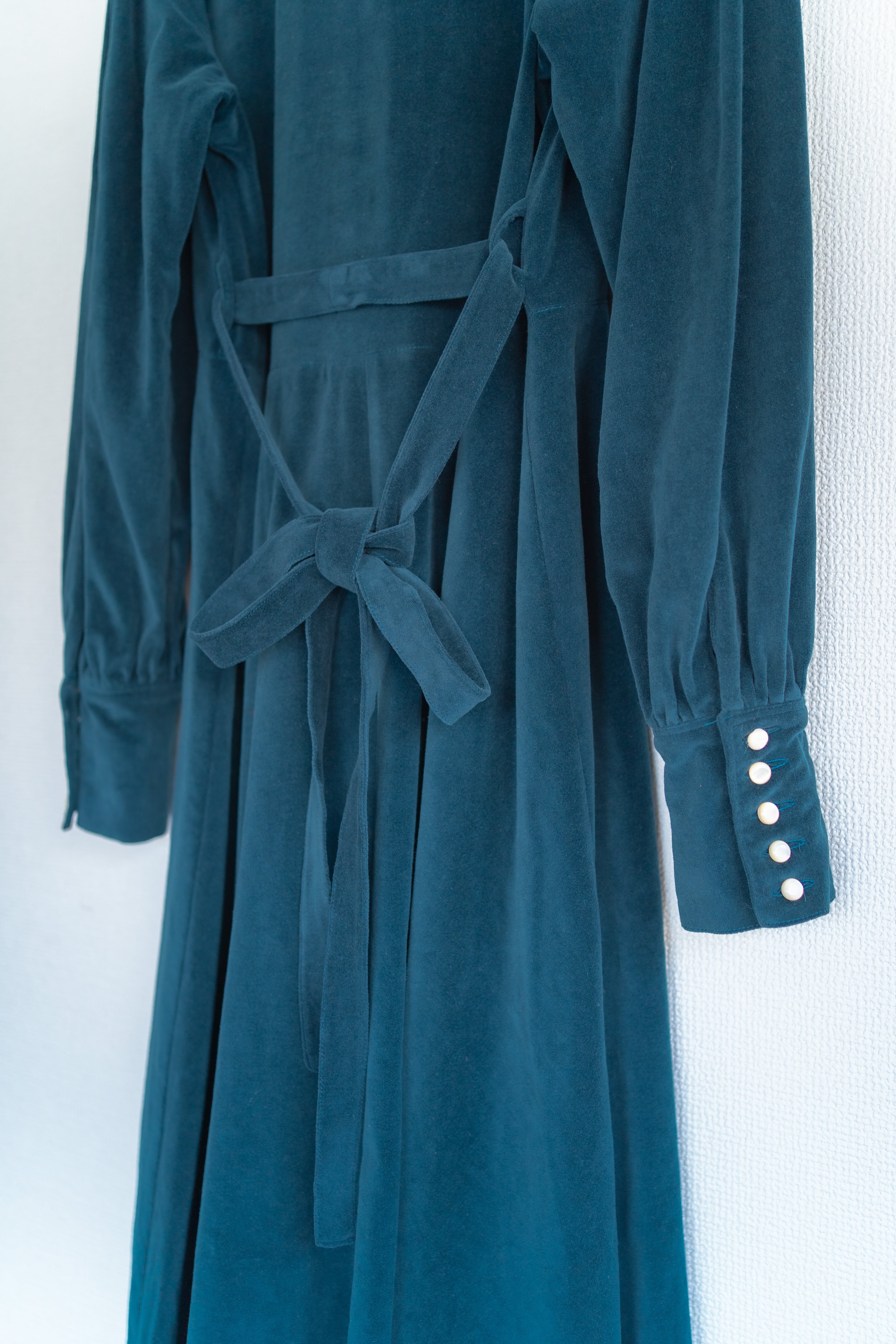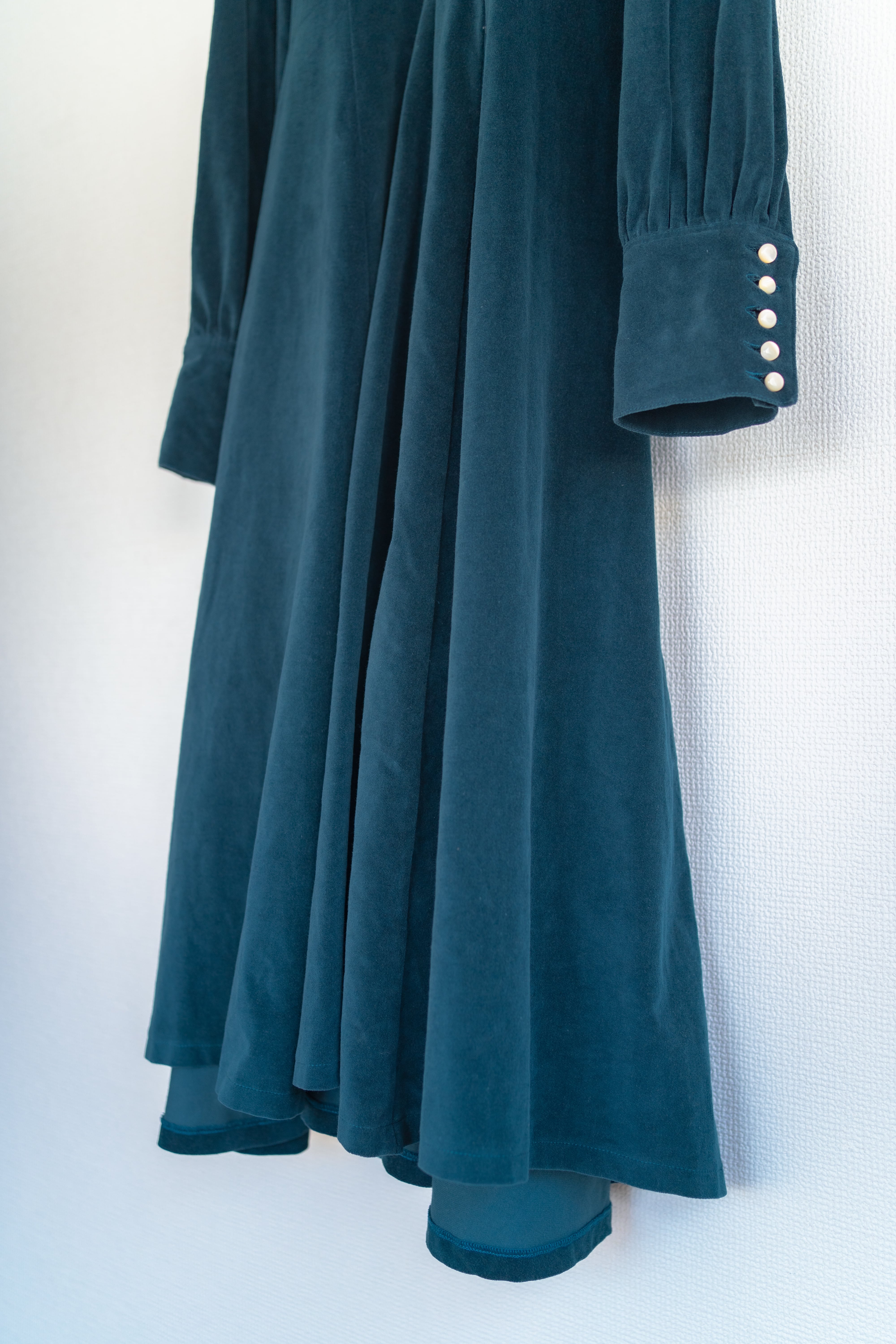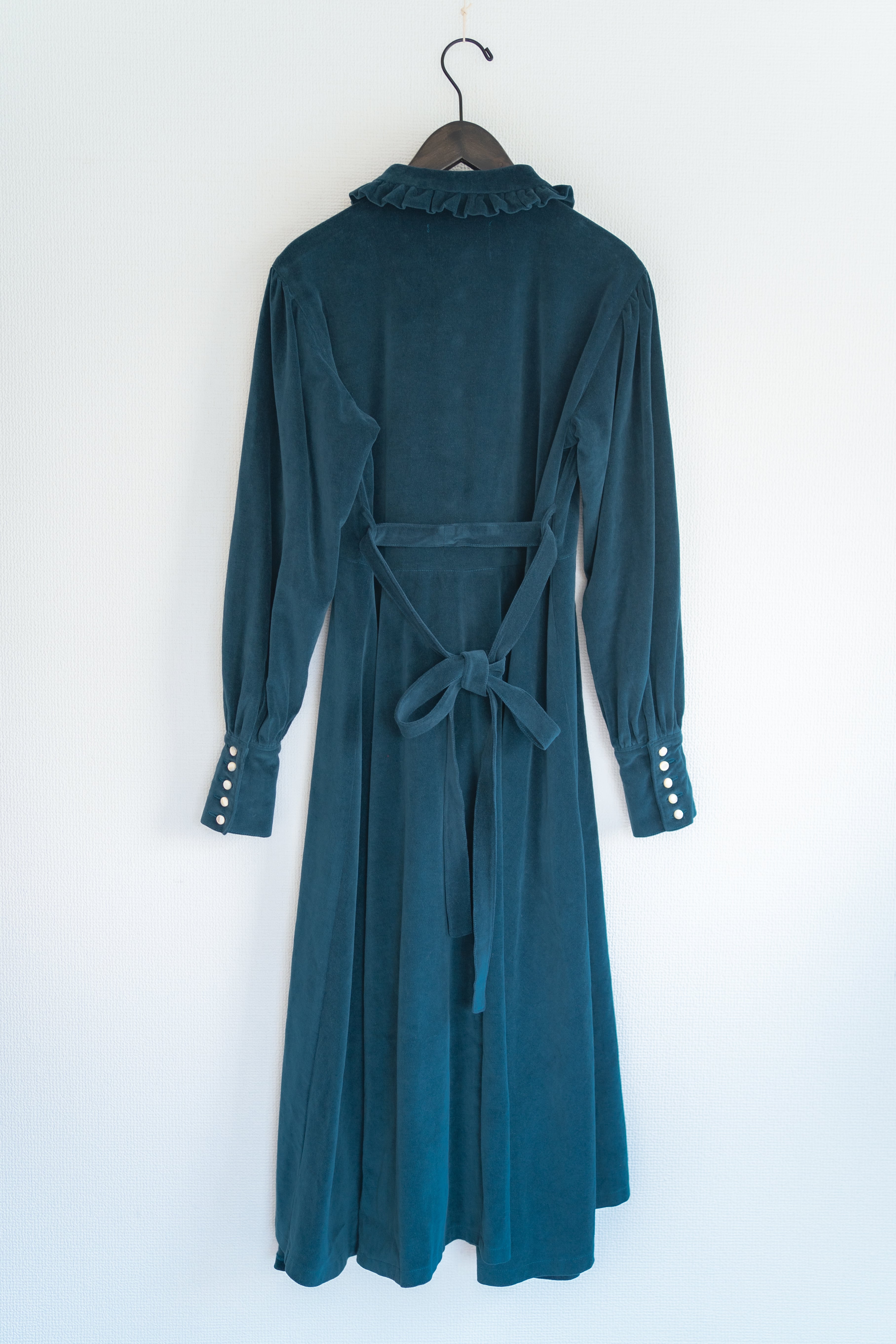 ※ベロア生地は光によって見えるお色味が違って見えます。太陽光や室内での光によって変わります。参考写真では室内と屋外それぞれ撮影しておりますが、同じお色味のワンピースです。