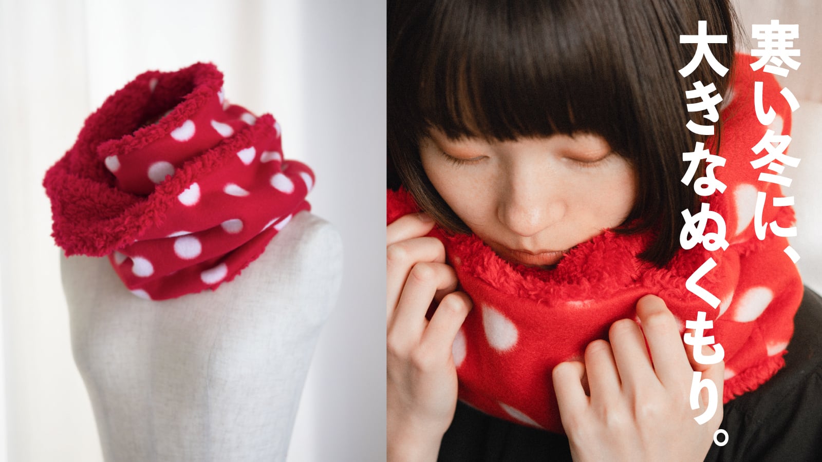 生地には保湿性に優れたフリース素材を採用して、しっとりとした心地よさを感じられます。首元を優しく包み込み、まるで毛布のようなぬくもりがずっと続きます。