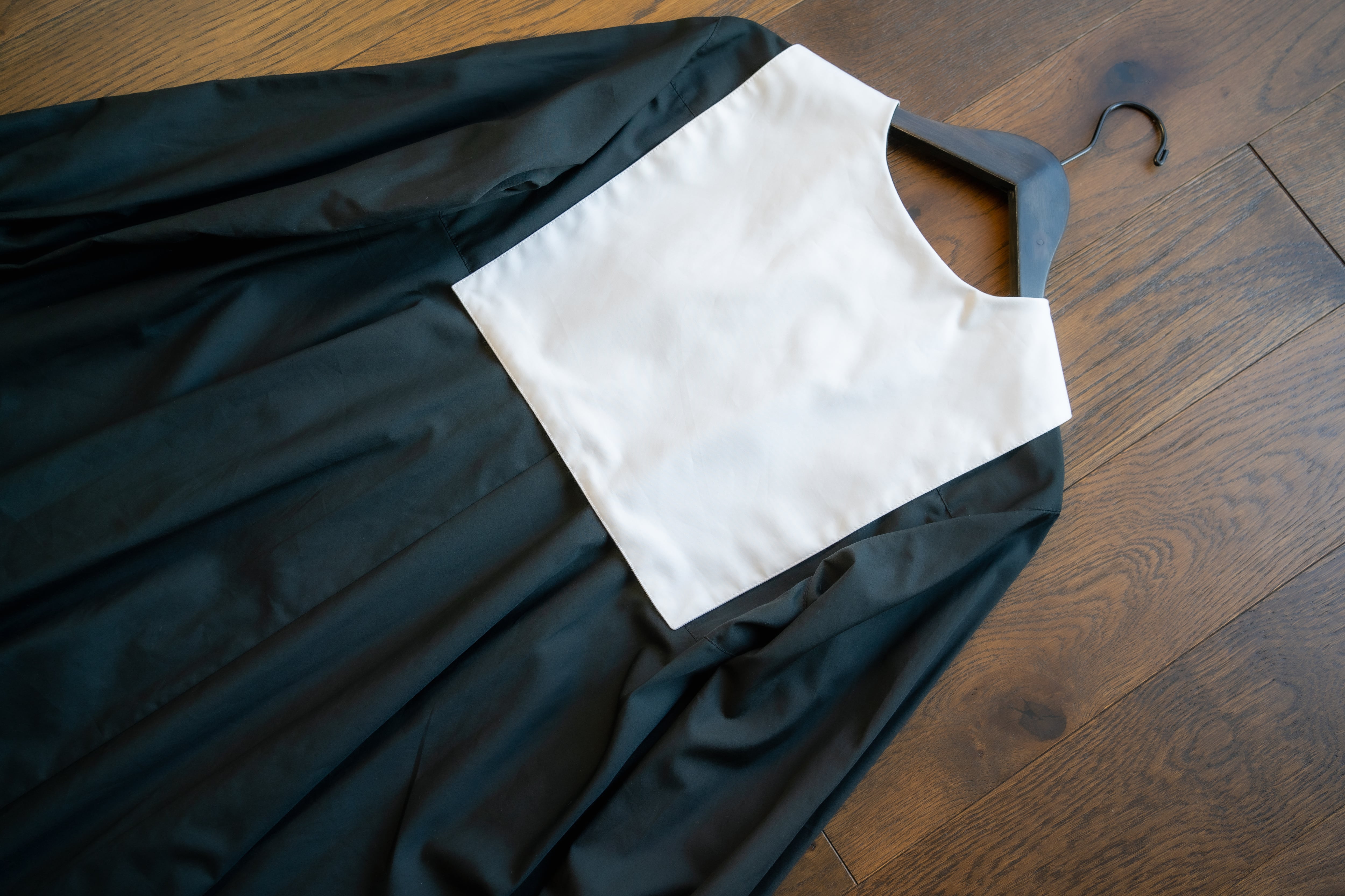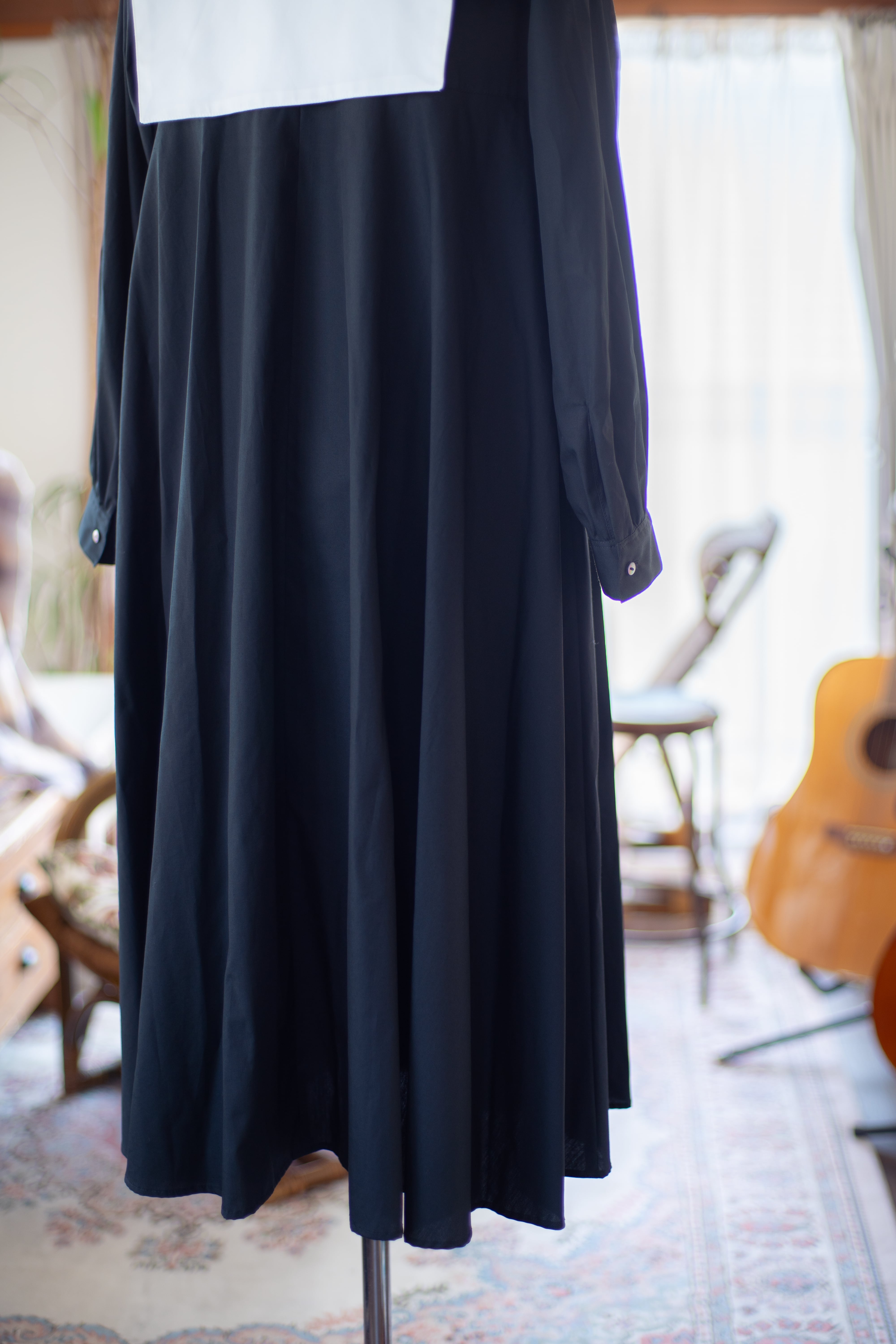 セーラーのもつ、ガーリーなイメージを残しつつもシックなカラーリング、シンプルなデザインでどんな方でもお召しになれるようなワンピースに仕上げました。